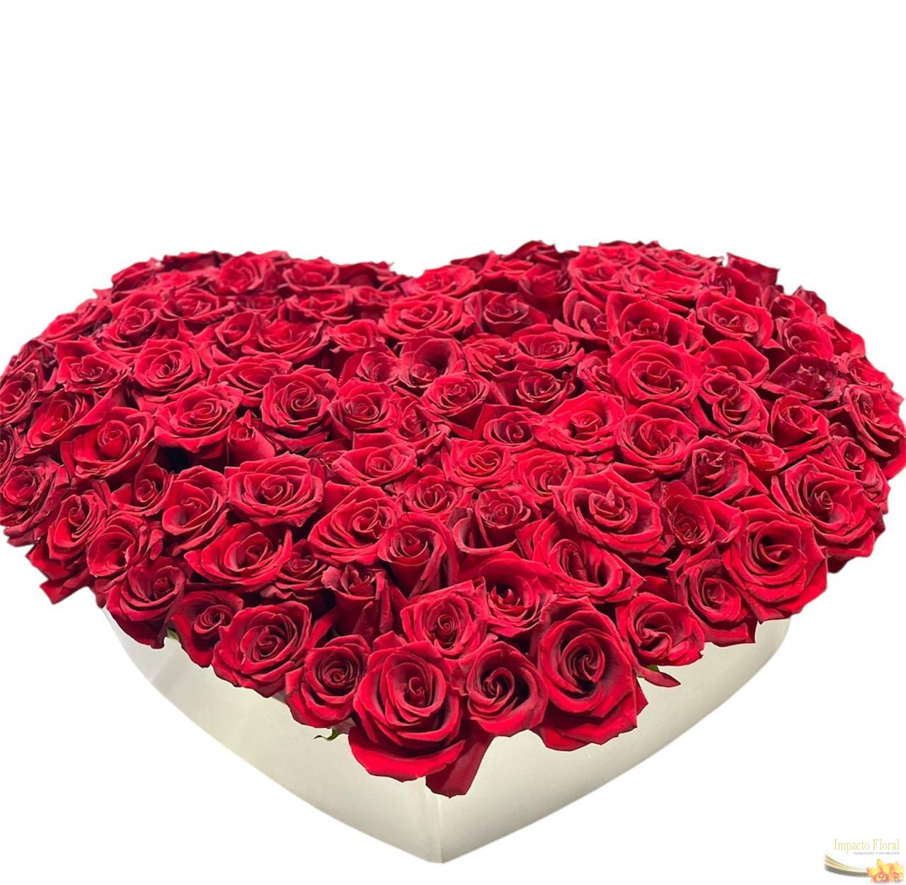 Este detalle trae aproximadamente 7 docenas de rosas encaja de carton en forma de corazón.